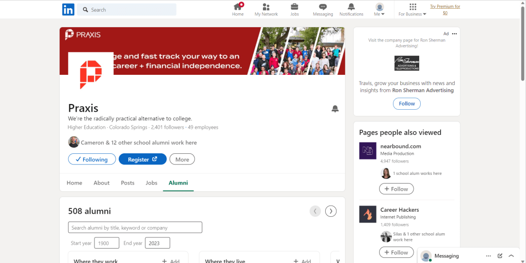 Praxis Alumni Page on LinkedIn – Notice the large number to sort through.